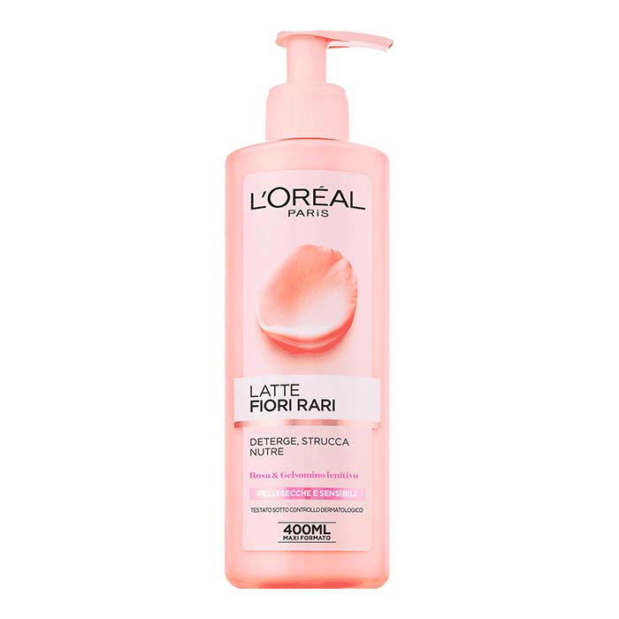 خانه مراقبت صورت مرطوب کننده و آبرسان شیر پاک کن پوست حساس لورال l’oreal Latte Fiori Rari حجم 400ml