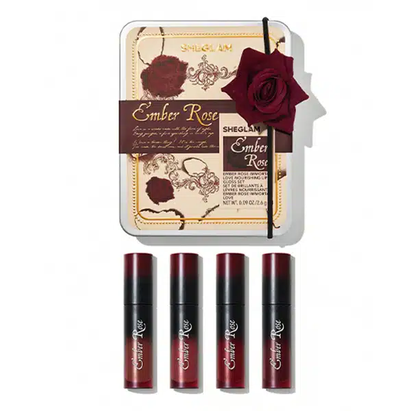 خانه لوازم آرایشی آرایش لب رژ لب کیت رژ لب مایع براق شیگلم مدل EMBER ROSE بسته 4 عددی شیگلم SHEGLAM EMBER ROSE IMMORTAL LOVE NOURISHING LIP GLOSS SET
